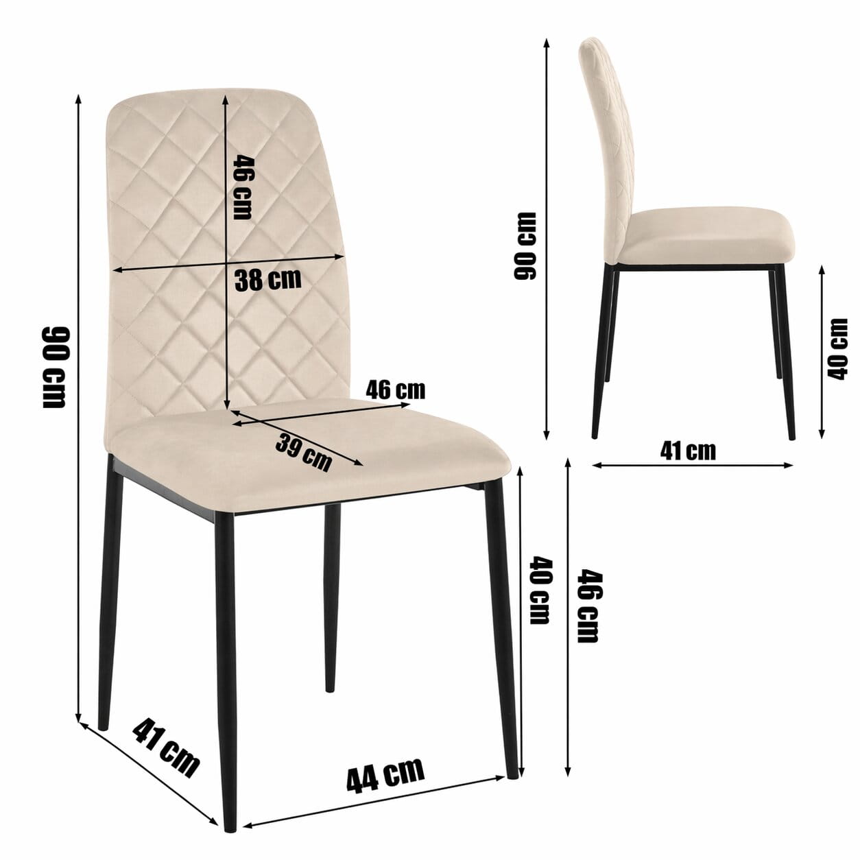 Wysokość siedziska od ziemi: 46 cm (pasuje do standardowych stołów).