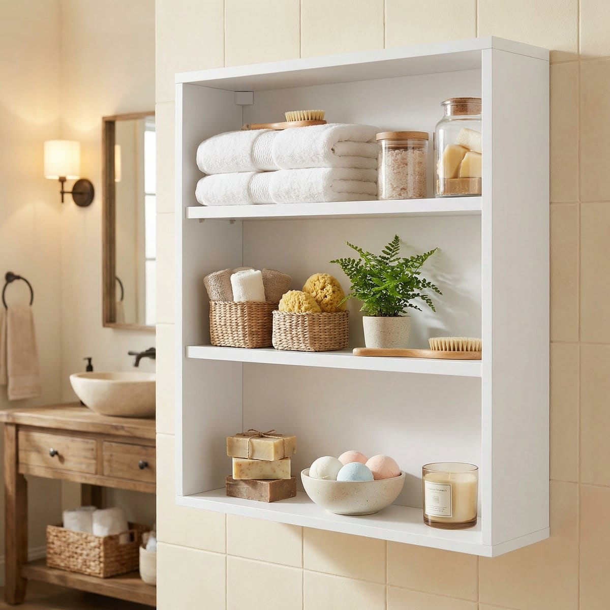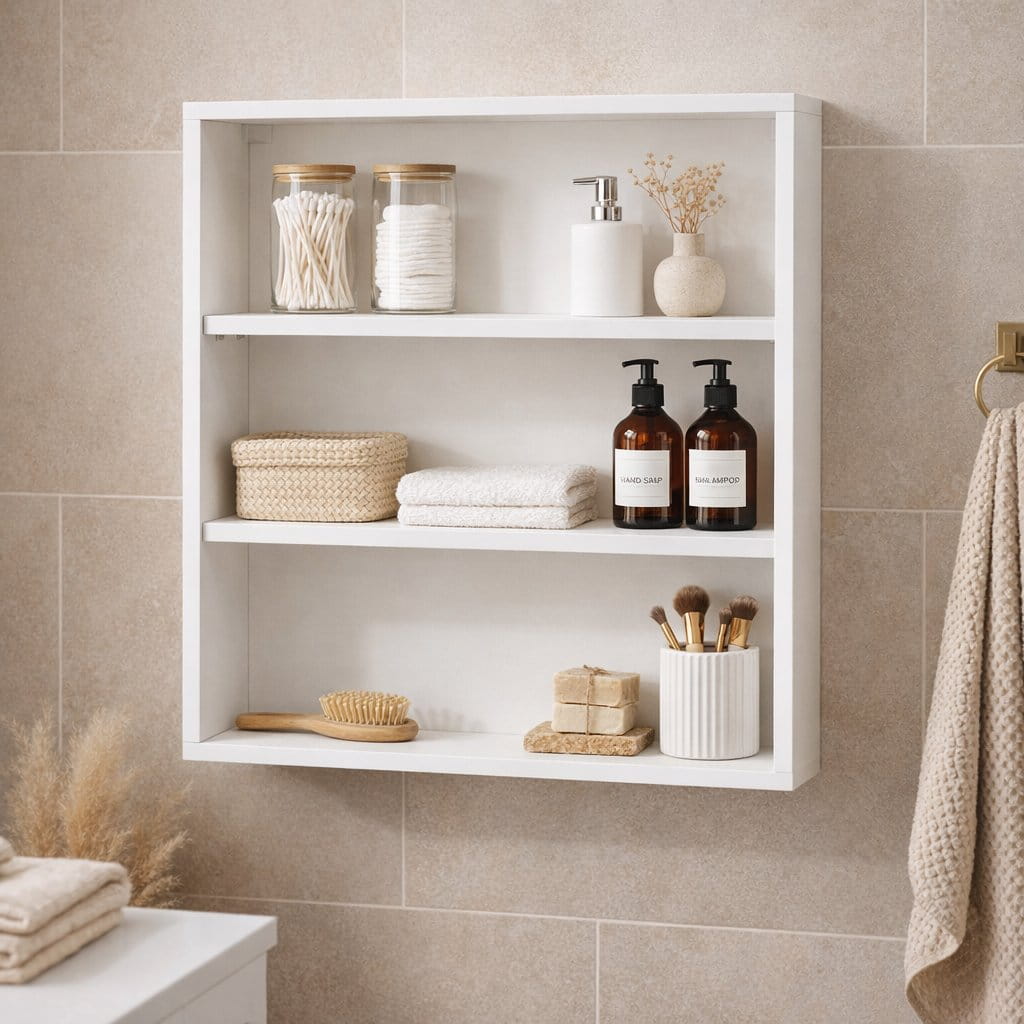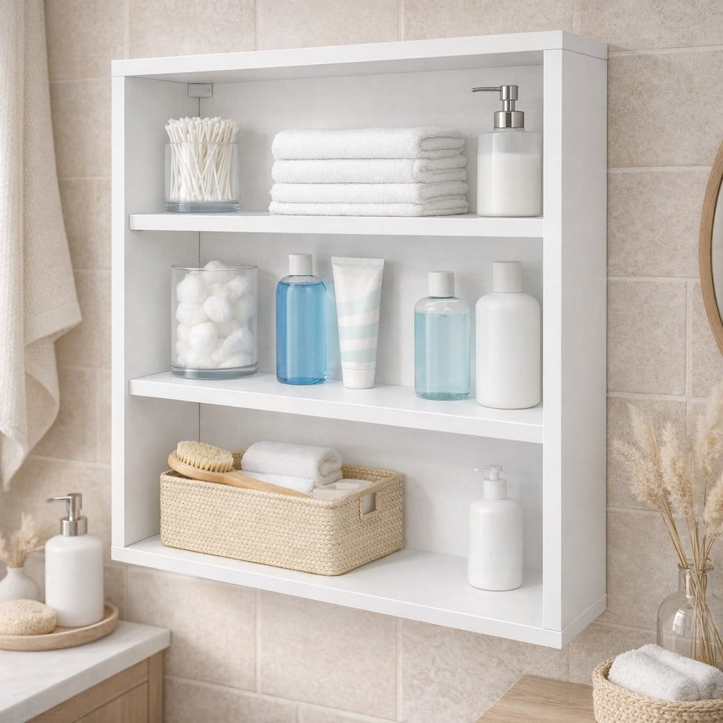 Jeśli masz dość zagraconych blatów i prowizorycznych koszyczków, czas uwolnić przestrzeń. Nasz wiszący regał to proste rozwiązanie: przenosi Twoje codzienne kosmetyki na ścianę, dając Ci do nich wygodny dostęp na wyciągnięcie ręki.