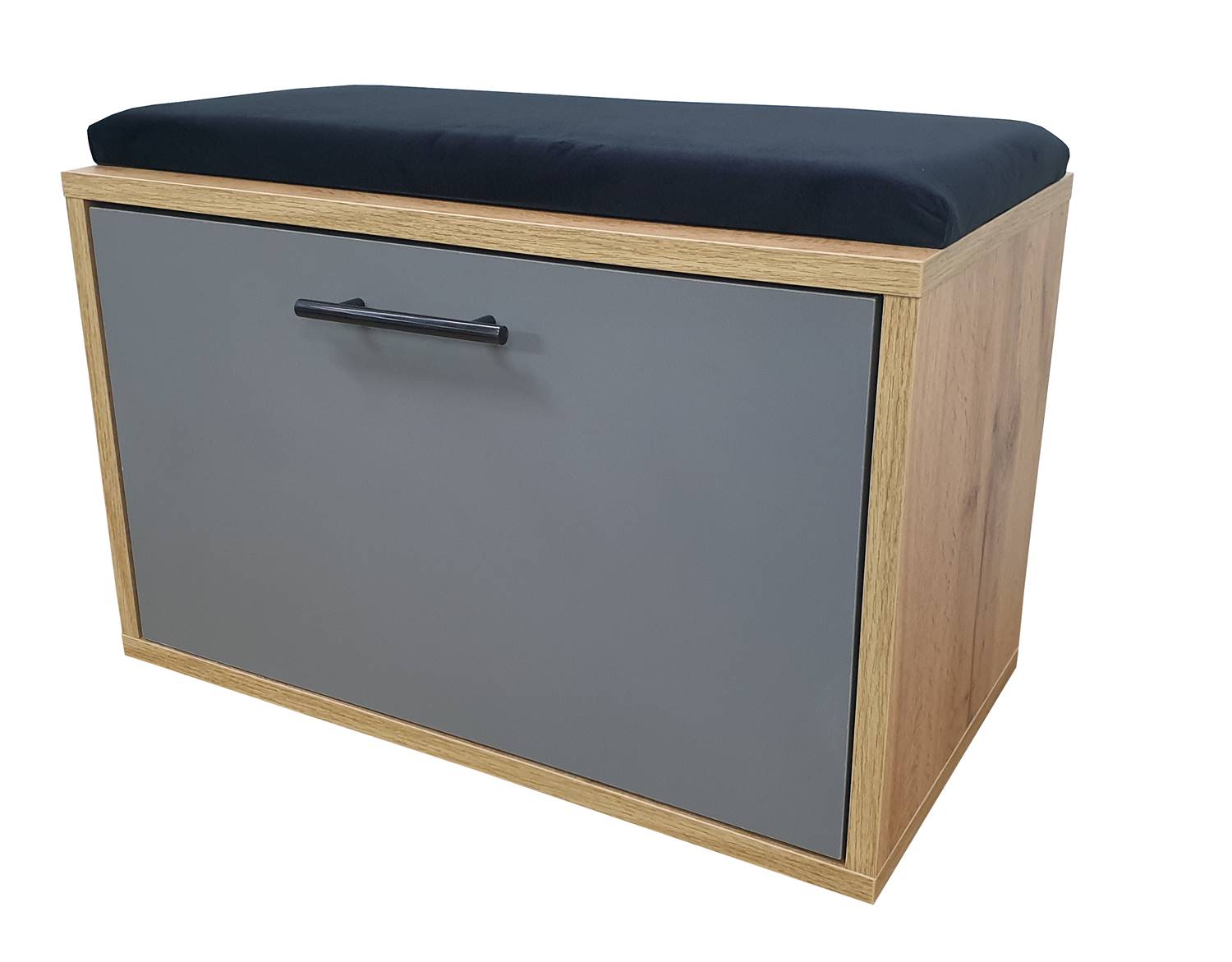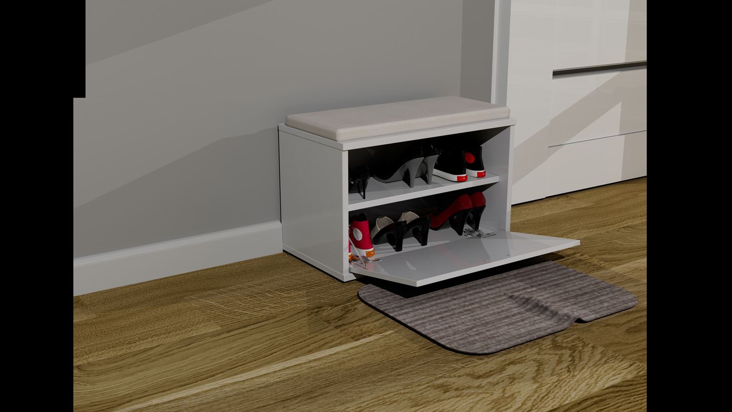 - Siedzisko – pokryte eko-skórą wykonana w nowoczesnej technologii lub miękką tkaniną z odpornością na piling: A++. Siedzisko wygodne i miękkie, wypełnione pianką tapicerską – pokochasz wiec zakładanie butów na swojej nowej szafce.