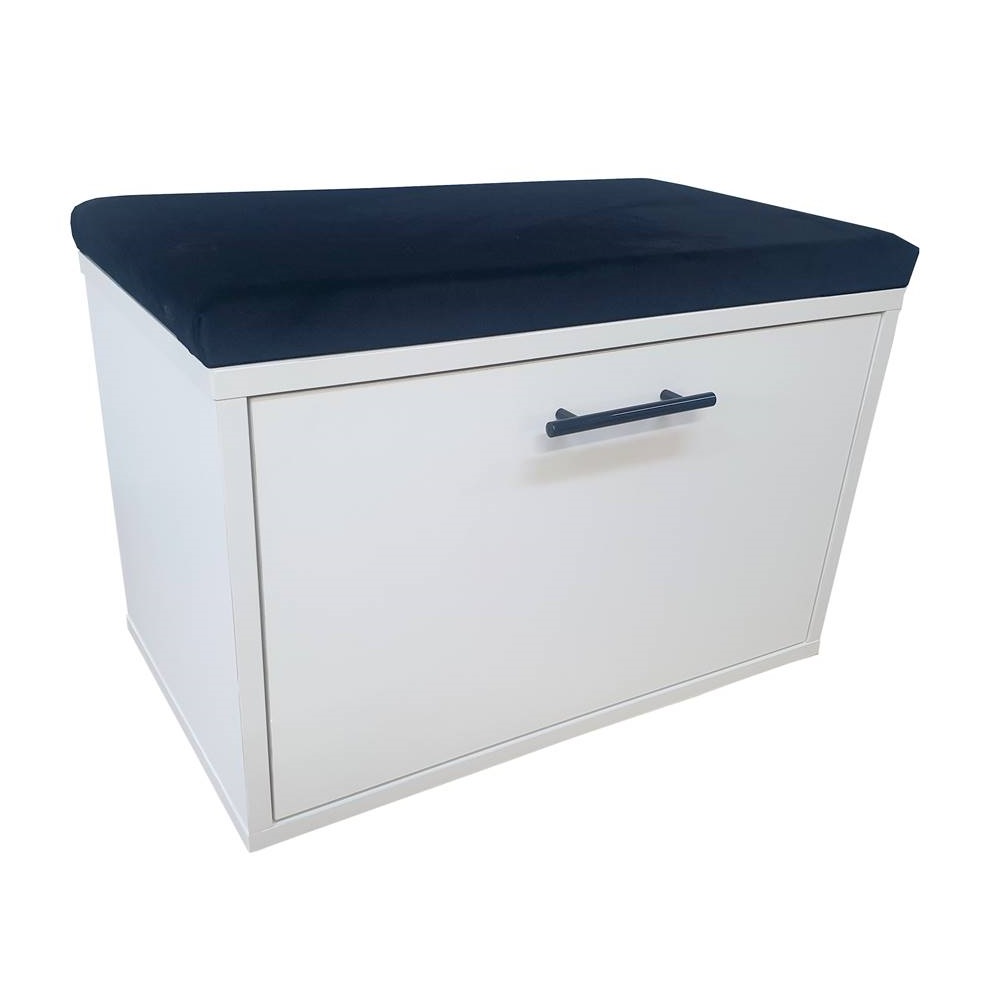 - Siedzisko na cały blat szafki — pokryte eko-skórą wykonana w nowoczesnej technologii lub miękką tkaniną z odpornością na piling: A++. Siedzisko wygodne i miękkie, wypełnione pianką tapicerską – pokochasz wiec zakładanie butów na swojej nowej szafce.